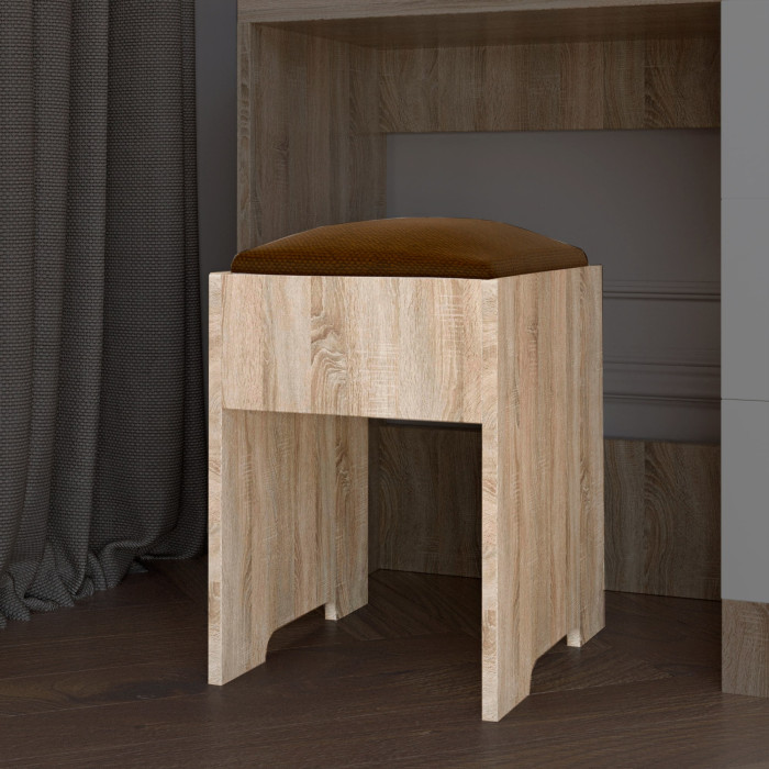 Представленная модель выполняет роль небольшого стульчика мягким сиденьем. Прекрасно дополнит интерьер вашего помещения и не займет много места. Пуф прекрасно сочетается с другими элементами мебели серии Соната, особенно хорошо впишется в пару к туалетному столу ТО-1.