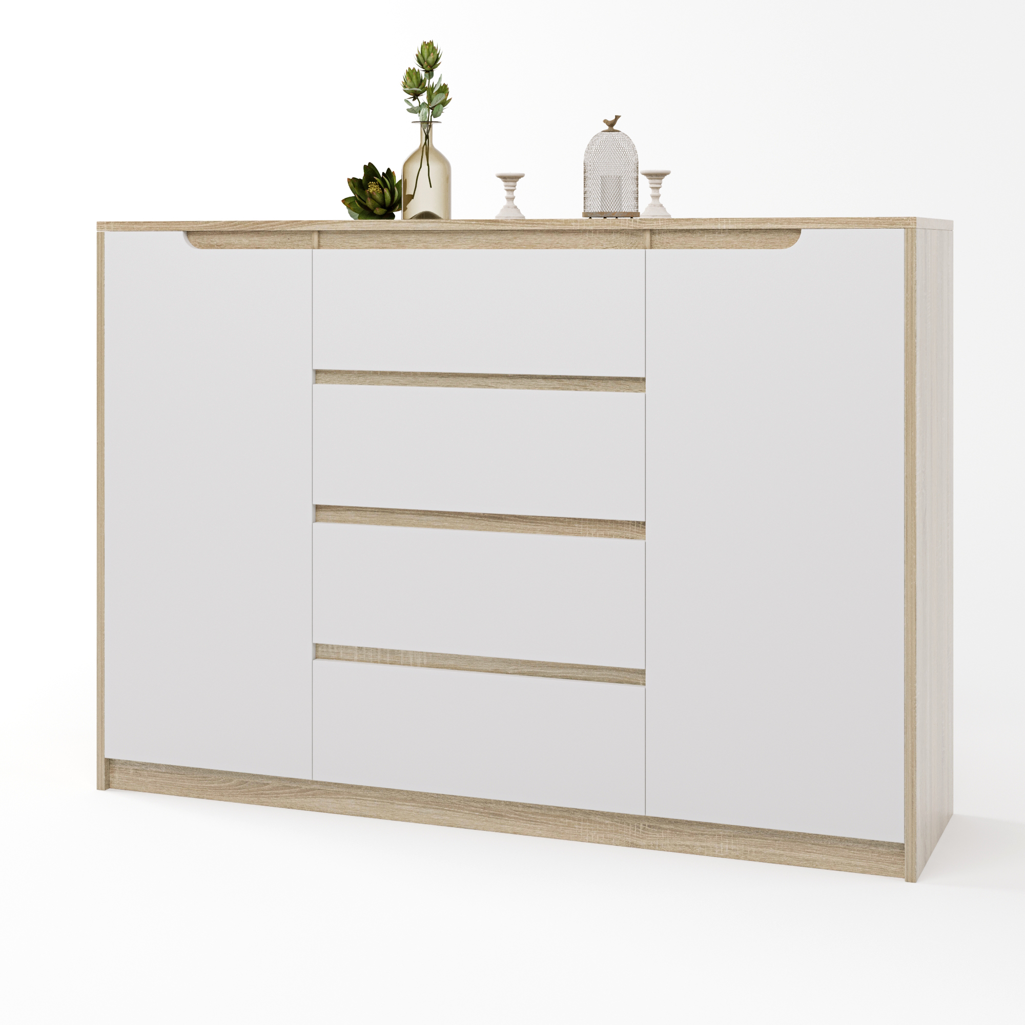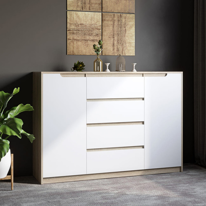 Большой комод для дома Эверест Микс-3 (телескопы) 140х38х97 дуб сонома/белый (EVR-2005)
