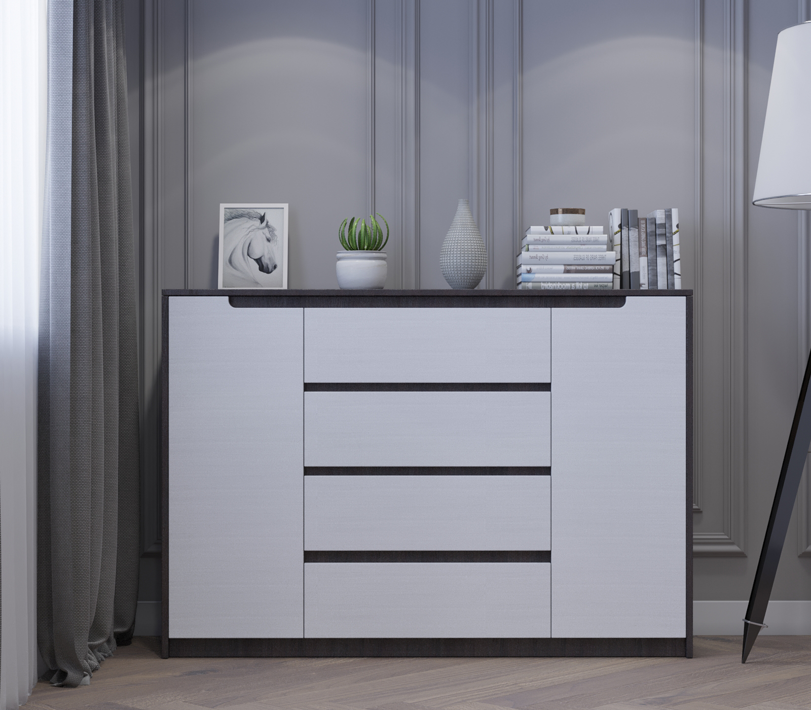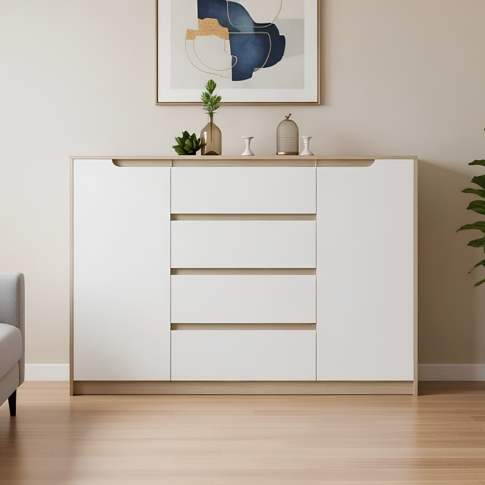 • Четыре центральных ящика: Идеально подходят для белья, аксессуаров, документов или мелкой кухонной утвари.