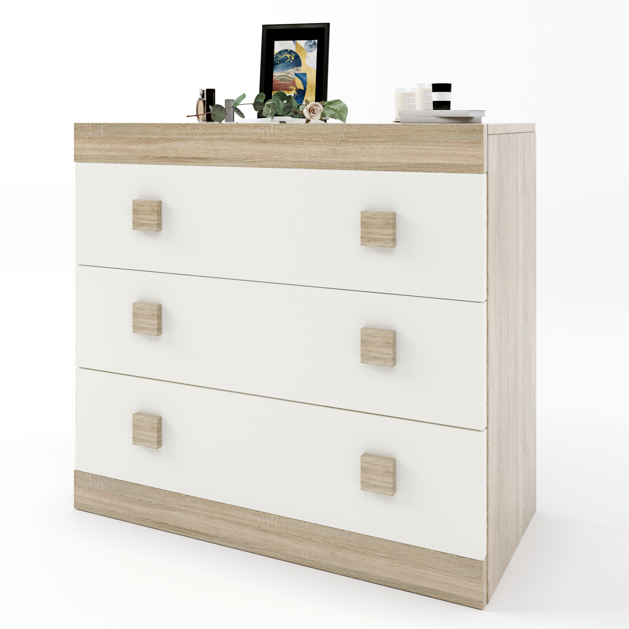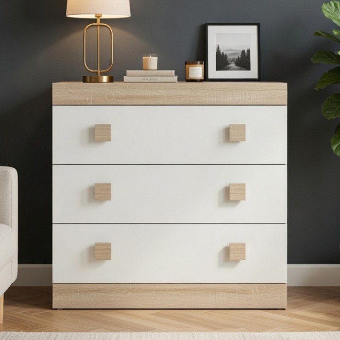 Комод Эверест на 3 ящика Соната-1 80х38х75 дуб сонома/белый (EVR-2044)