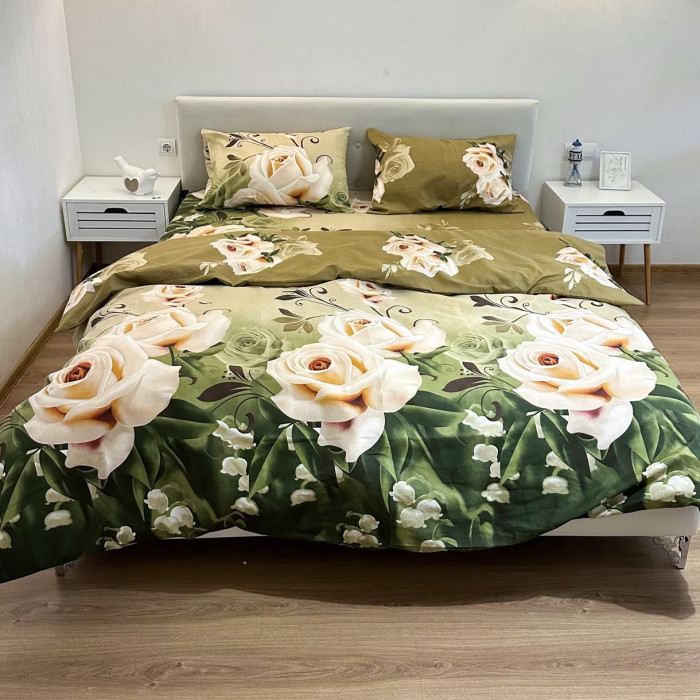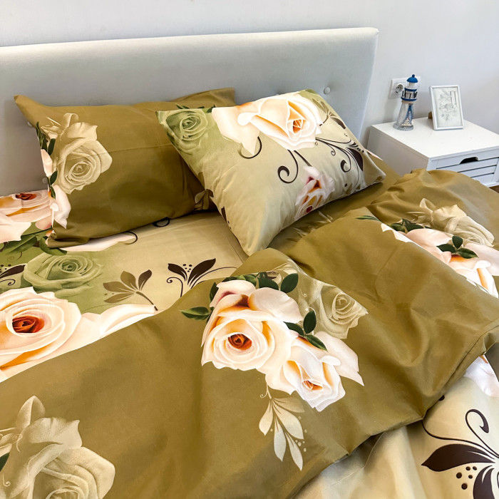 Постельное белье LeLIT P-0108, Поликоттон, Коричнево-зелёный, Семейный