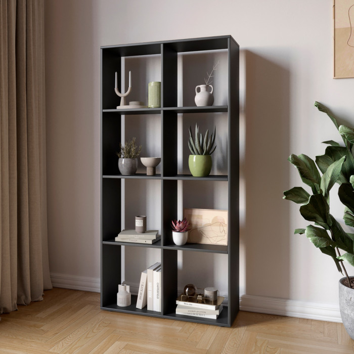 - Компактность: Благодаря своим небольшим размерам стеллаж легко устанавливается в ограниченном пространстве, предоставляя при этом достаточно места для хранения. Идеально подходит для малых комнат, коридоров или офисных зон.