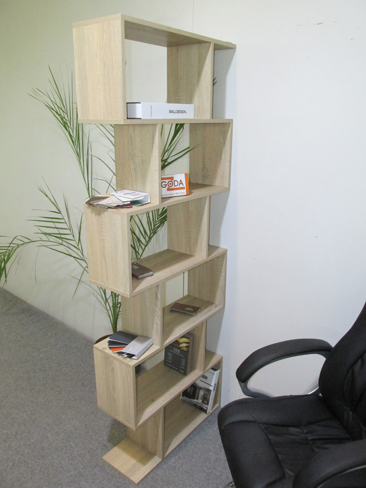 • Вместимость и удобство: Стеллаж имеет несколько асимметрично расположенных полок, позволяющих удобно хранить всевозможные вещи. Он подходит как для книг, так и для декоративных элементов, создавая увлекательный визуальный эффект.
