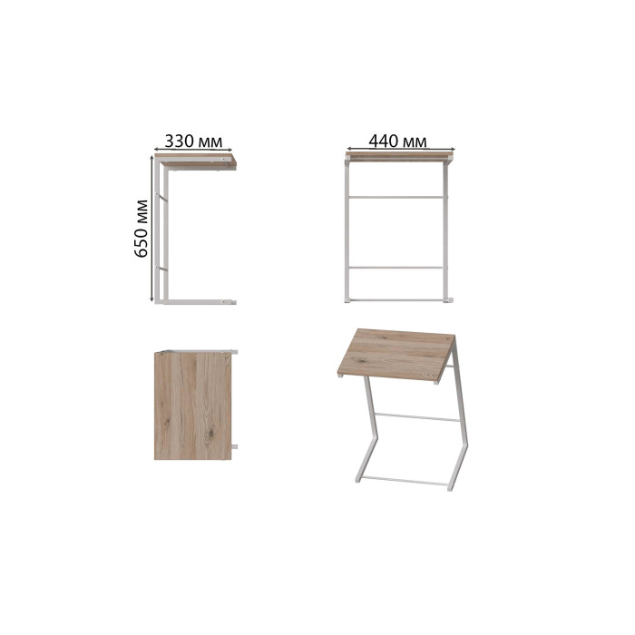 Каркас изготовлен из металлической профильной трубы, покрытой стойкой порошковой краской, что обеспечивает надежность и долговечность конструкции. Столешница — из качественной ламинированной ДСП толщиной 16 мм, устойчивой к влаге, царапинам и бытовым нагрузкам. Поверхность легко очищается и сохраняет идеальный вид в течение длительного времени.