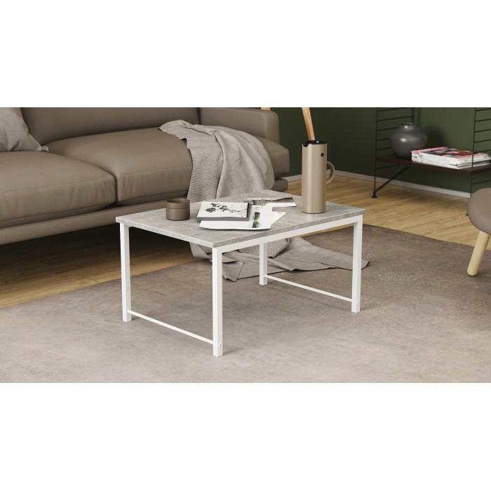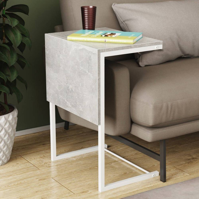 Стол журнальный приставной Терри Комбо Ferrum-decor 345x662x440 Белый металл ДСП Бетон 16 мм (FRD-105149)