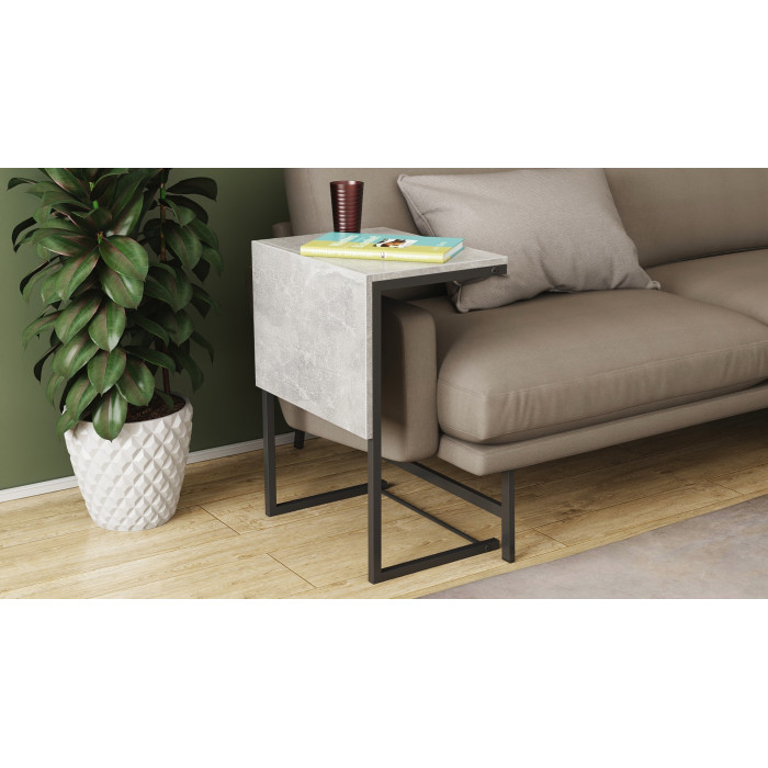Стол журнальный приставной Терри Комбо Ferrum-decor 345x662x440 Черный металл ДСП Бетон 16 мм (FRD-105142)