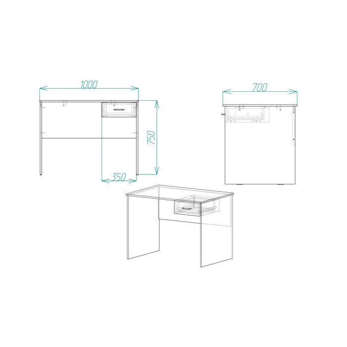 Столешница и элементы конструкции изготовлены из качественной ламинированной древесно-стружечной плиты (ЛДСП) толщиной 16 мм, которая отличается прочностью, стойкостью к влаге, царапинам и повседневным нагрузкам. Кромка ПВХ обеспечивает защиту от сколов и увеличивает долговечность изделия. Ящик оснащен надежными телескопическими направляющими, которые гарантируют плавное и тихое выдвижение.