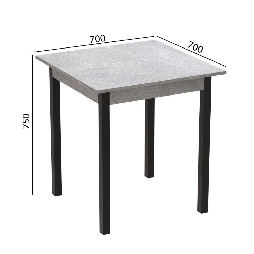 Ножки стола изготовлены из профильной металлической трубы квадратного сечения 40*40 мм, покрытой крепкой порошковой краской, что обеспечивает защиту от влаги, коррозии и царапин. Столешница выполнена из ламинированного ДСП толщиной 16 мм, которое отличается износостойкостью и простотой в уходе. Конструкция стола разработана таким образом, чтобы гарантировать стабильность и длительный срок эксплуатации.
