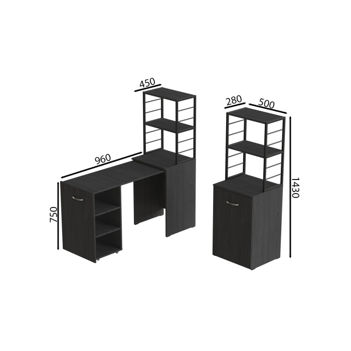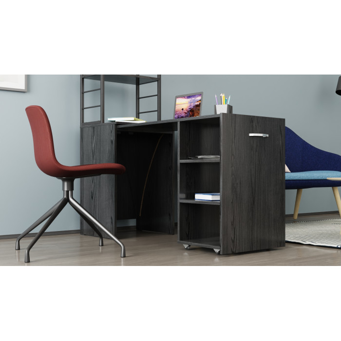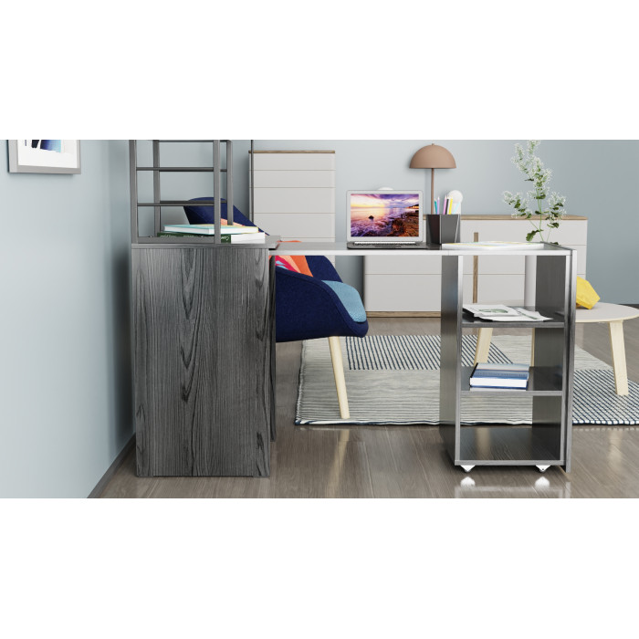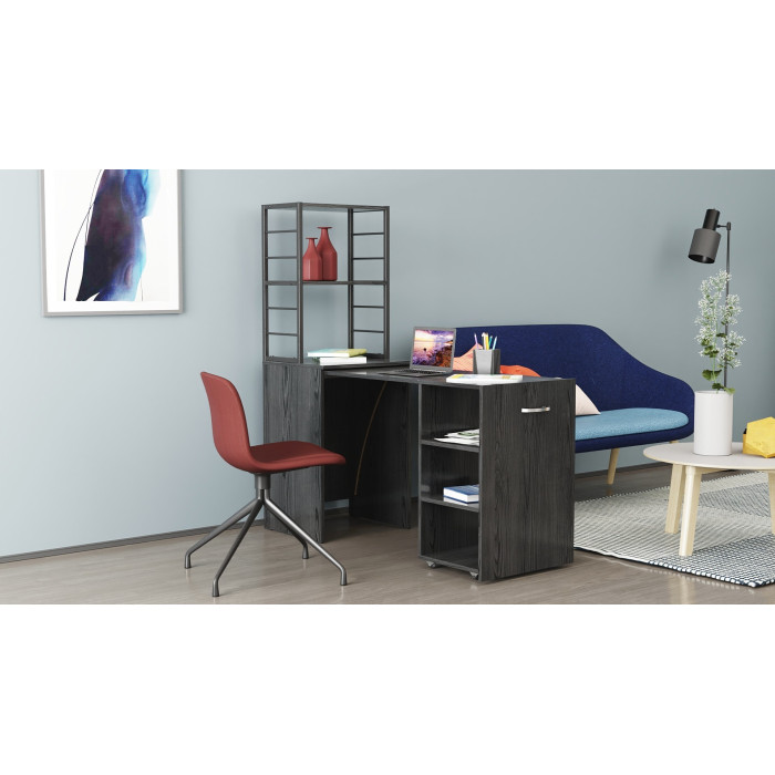 • Конструкция 2-в-1: тумба с этажеркой + полноценный рабочий стол: максимум функциональности в одном изделии.