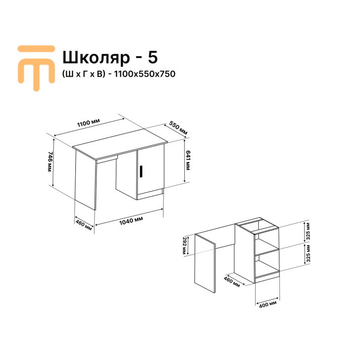 Стол Школьник-5 - это удобное и функциональное решение для учебы, работы и повседневных задач. Модель укомплектована встроенной тумбой с двумя внутренними полками, где можно аккуратно разместить книги, папки и личные вещи. Большая рабочая поверхность позволяет правильно организовать пространство: на столе легко размещаются письменные принадлежности, учебные материалы и даже компьютер. Такое решение обеспечивает порядок, удобство и свободу движений, делая рабочее место максимально комфортным для ежедневного использования.