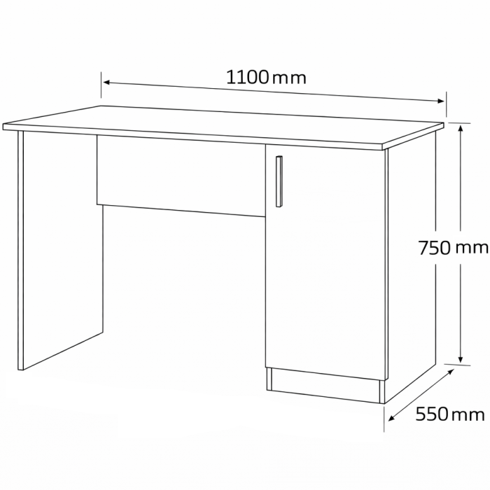 - Функциональная тумба. Стол оснащен встроенной тумбой с распашной дверцей. Такое наполнение позволяет удобно организовать хранение документов, учебных принадлежностей, канцелярии и личных вещей.