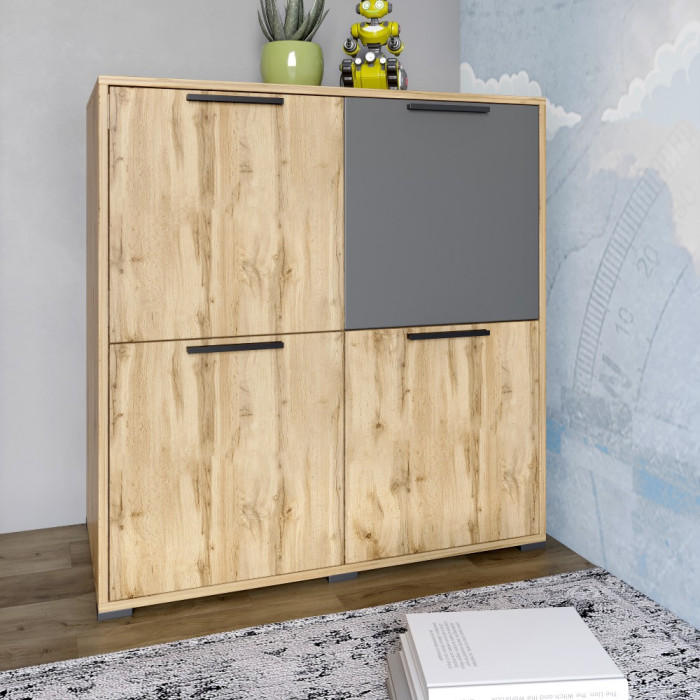 Тумба четырехдверная LION Краш 82x43x86 см Дуб аппалачи/Антрацит (LION-041759)