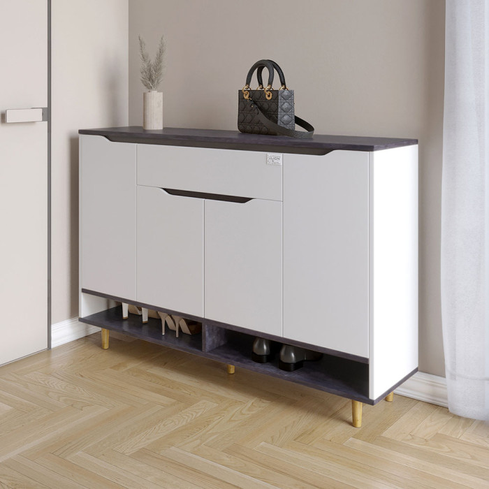 • Тумба оснащена вместительной полкой для обуви, что позволяет удобно организовать пространство в прихожей и поддерживать порядок.