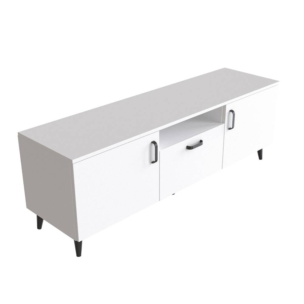 Тумба Лэстер на конусных ножках Ferrum-decor 48x139x38 Черный металл ДСП Белый 16 мм (FRD-106807)