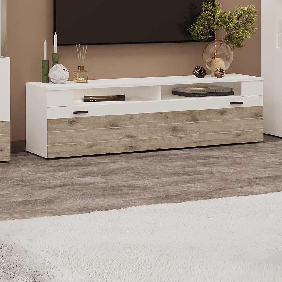 Тумба под телевизор 1Д Сокме Джейкоб 140x42,2x40 Дуб викинг/белый (SKM-081286)