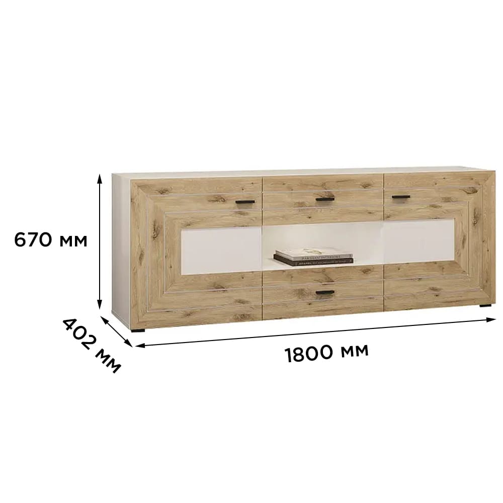 Тумба под телевизор 2Д2Ш Сокме Джейкоб 180x67x40,2 Дуб викинг/Белый (SKM-081287)