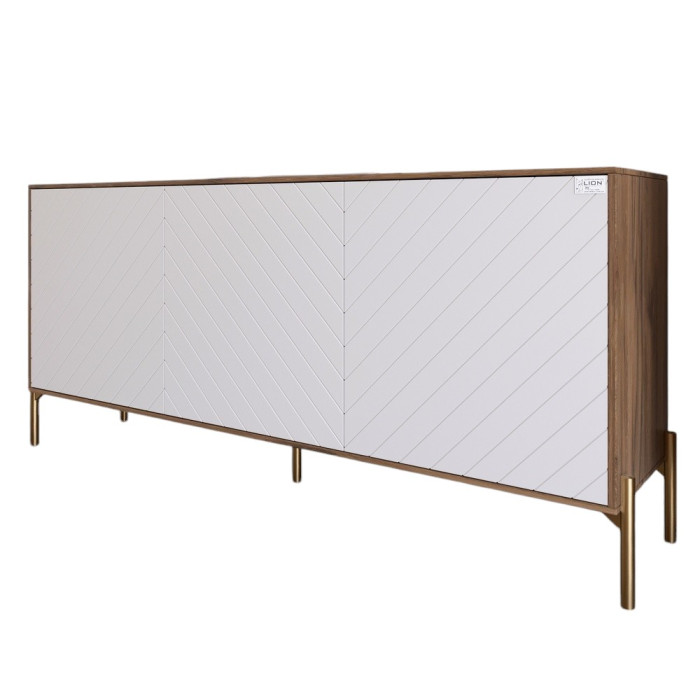 Тумба ТВ от Lion - это идеальное сочетание современного дизайна и функциональности. Ее фасады украшены стильным диагональным узором, который привносит в интерьер динамику и элегантность. Лаконичный корпус дополнен высокими металлическими ножками черного цвета, которые придают тумбе легкость и обеспечивают устойчивость. Тумба LION отлично подходит для хранения мультимедийных устройств, аксессуаров и бытовых мелочей. Просторная верхняя поверхность предназначена для размещения телевизора, звуковой системы или декоративных элементов. Эта модель органично впишется в интерьер гостиной, спальни или офиса.