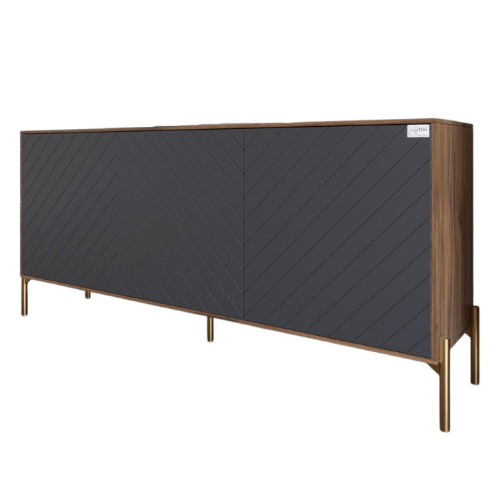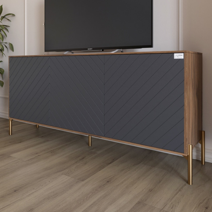 Тумба под телевизор с золотыми металлическими ножками LION Амарант 168x40x76,5 см Дуб Ливорно/Графитовый (LION-043080)
