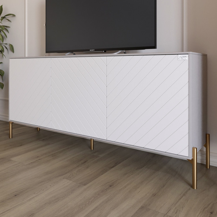 Тумба под телевизор с золотыми металлическими ножками LION Амарант 168x40x76,5 см Кашемир/Белый (LION-043069)