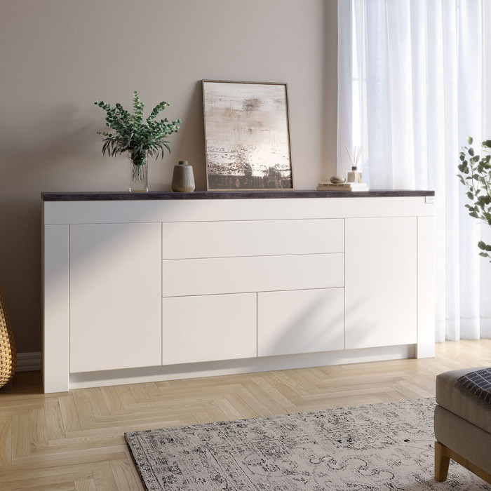 Большой комод LION Ларри-2 Нимфея альба (белый)/Бетон Теный (LION-041060)