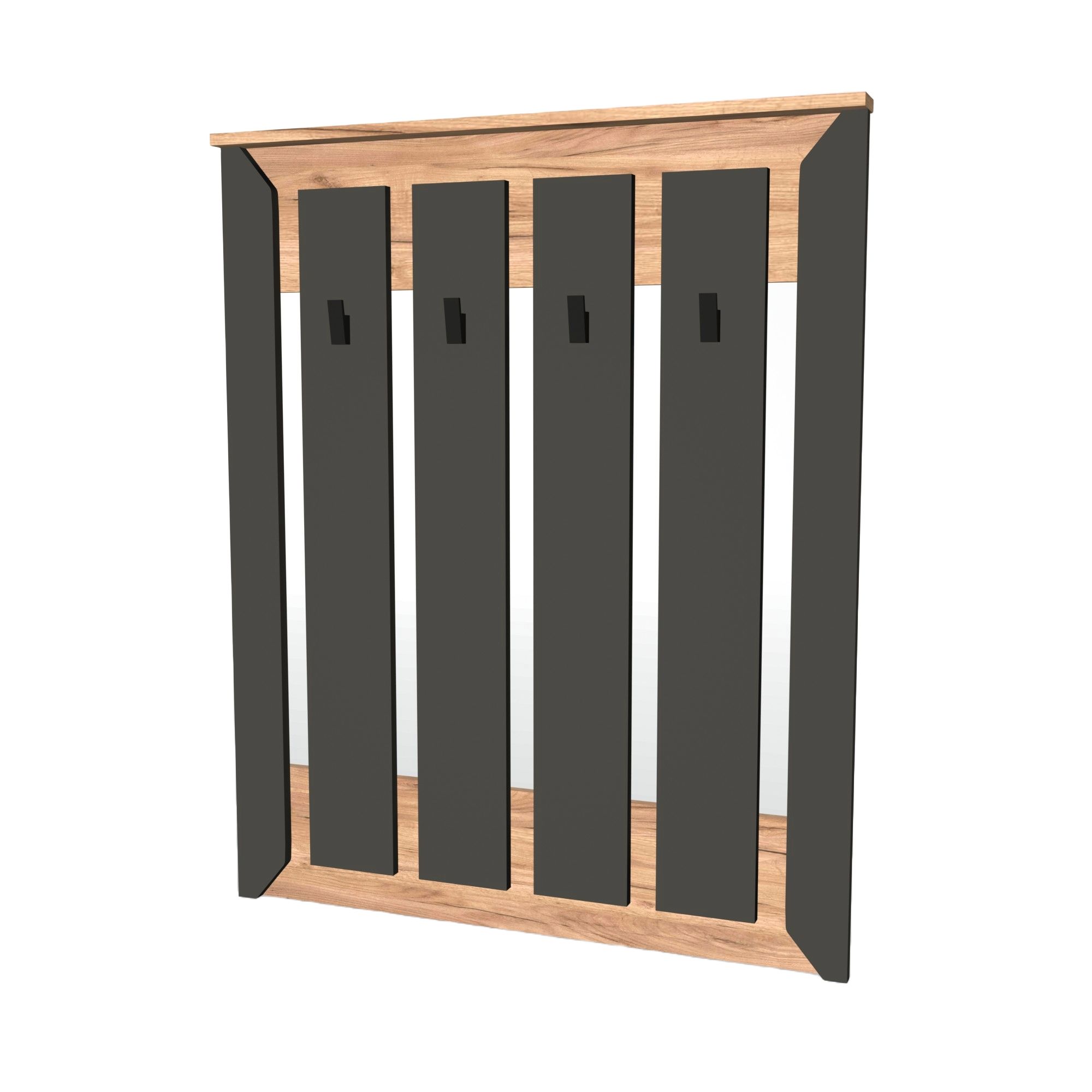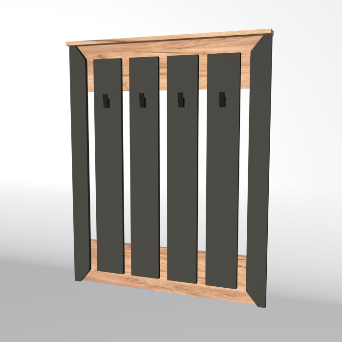 Основа вешалки изготовлена из высококачественного ЛДСП, что гарантирует прочность конструкции и длительный срок службы. Крючки выполнены из прочного износостойкого пластика, специально рассчитанного на нагрузку от тяжелой зимней одежды и аксессуаров.