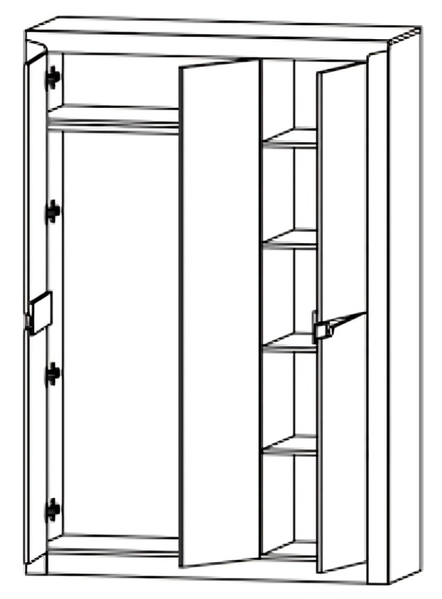 - Раціональне внутрішнє наповнення: Конструкція складається з двох великих функціональних частин: місткого відділення зі штангою для верхнього одягу та окремої секції з п’ятьма полицями для складених речей.