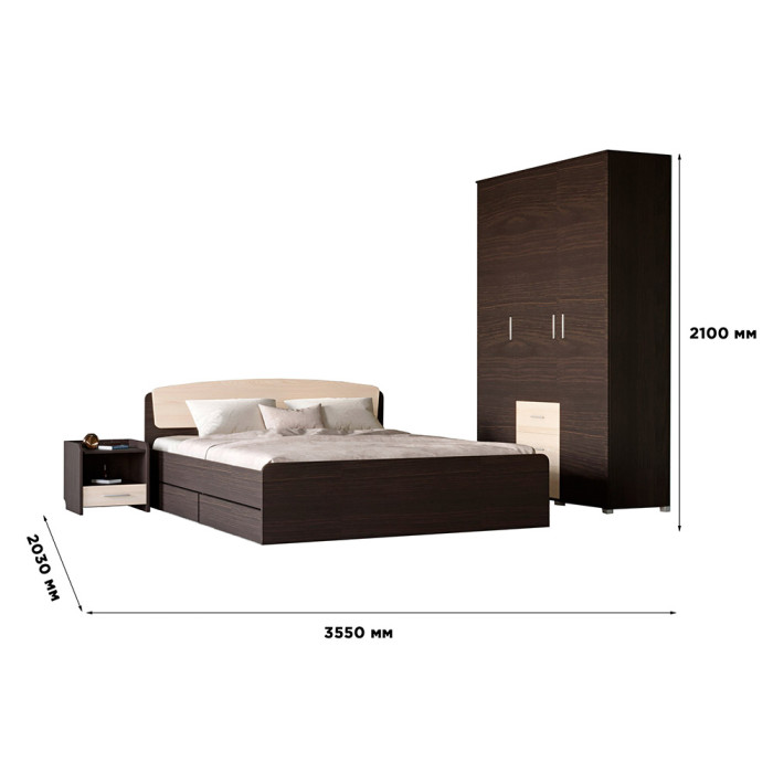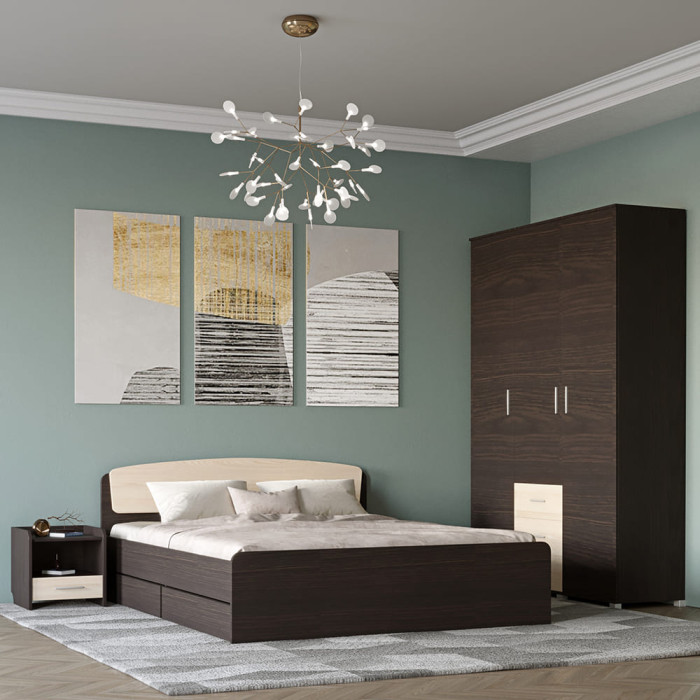 Спальня Еверест Бриз комплект 3 (модульна - 3 елементи) венге/дуб молочний (EVR-2550)