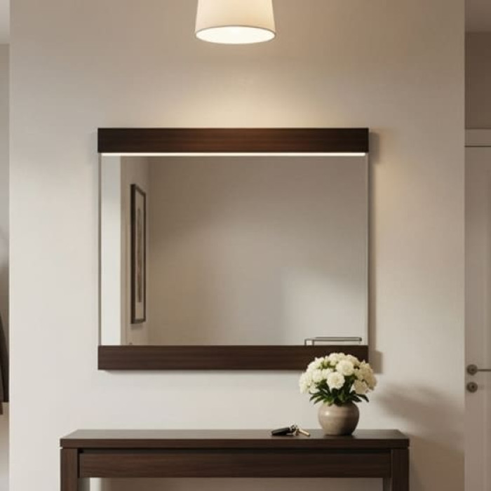 Зеркало изготовлено из ламинированной древесностружечной плиты (ЛДСП), что обеспечивает надёжность и долговечность конструкции. Поверхность устойчива к царапинам и воздействию влаги, легко ухаживается и сохраняет привлекательный вид на протяжении длительного времени. Кромка из ПВХ толщиной 0,5 мм защищает края от повреждений и придаёт изделию завершённый вид. Зеркальное полотно выполнено из стекла высокого качества, которое обеспечивает чёткое, естественное отражение без искажений. В комплект входит фурнитура для настенного монтажа, что гарантирует надёжное и безопасное крепление.