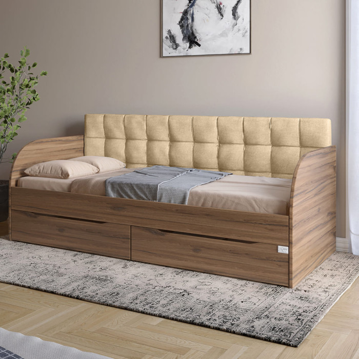 Дитяче односпальне ліжко LION Л-7 з шухлядами та ламелями Лілі-02 (бежевий) 90x190 см Дуб сонома (LION-045089)