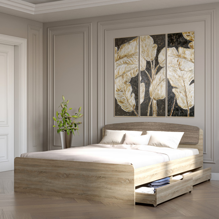 Ліжко розраховане на щоденне використання і витримує істотні навантаження, забезпечуючи стабільність і комфорт під час сну. Лаконічні форми і продумані функціональні елементи роблять його не тільки зручним спальним місцем, але і практичним рішенням для організації зберігання, дозволяючи раціонально використовувати простір спальні.