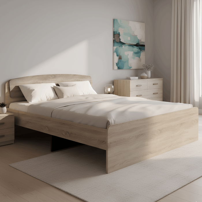 Міцна конструкція забезпечує високу надійність і тривалий термін експлуатації, що особливо важливо для щоденного використання. Ліжко розроблено з урахуванням сучасних стандартів комфорту та естетики: воно створює стійку і зручну основу для сну, а також передбачає можливість розширення функціональності за рахунок додаткових елементів.