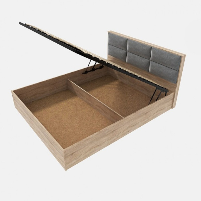 - Основною особливістю цієї моделі є підйомний механізм з ламельним каркасом. Він дає змогу легко підняти верхню частину ліжка, створюючи доступний простір для зберігання різних речей під ним. Це особливо зручно в разі обмеженого простору, оскільки ви можете використовувати внутрішній об'єм ліжка для зберігання постільної білизни, одягу або інших предметів.