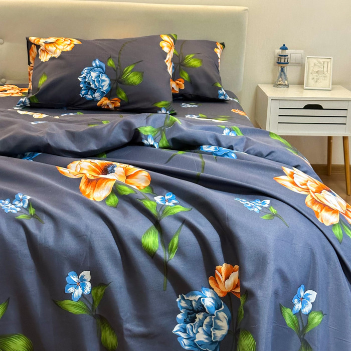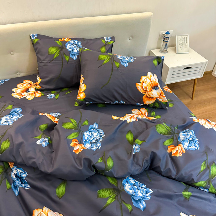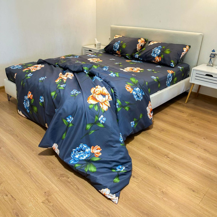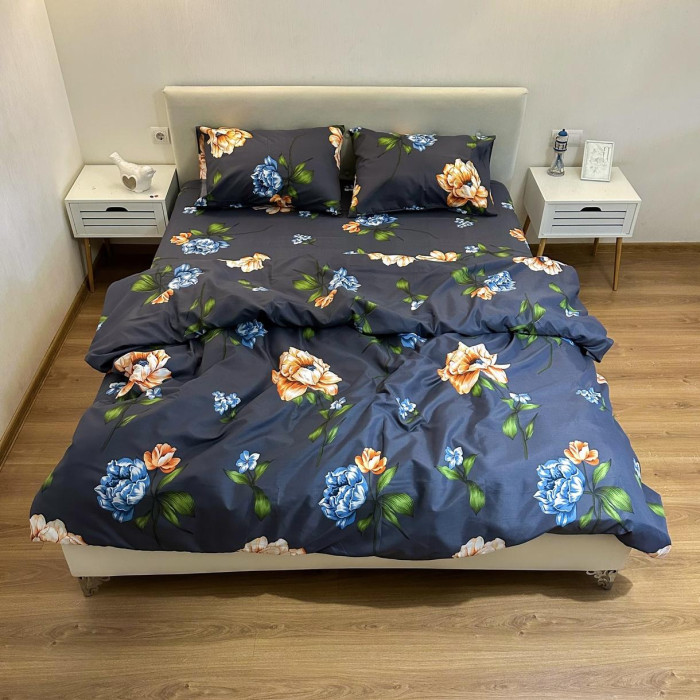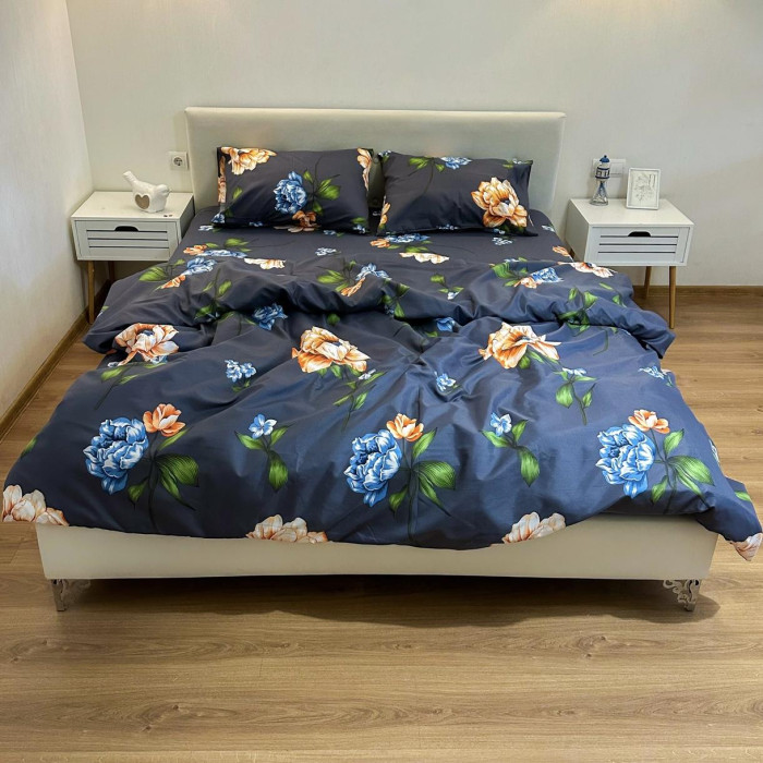 Постільна білизна LeLIT P-0121, Полікотон, Темно-синій, Сімейний