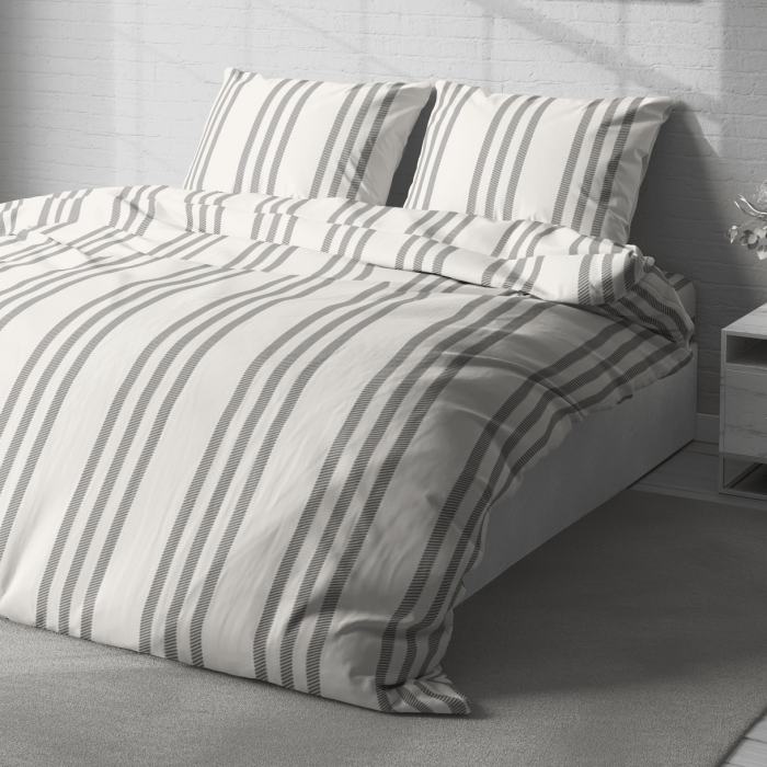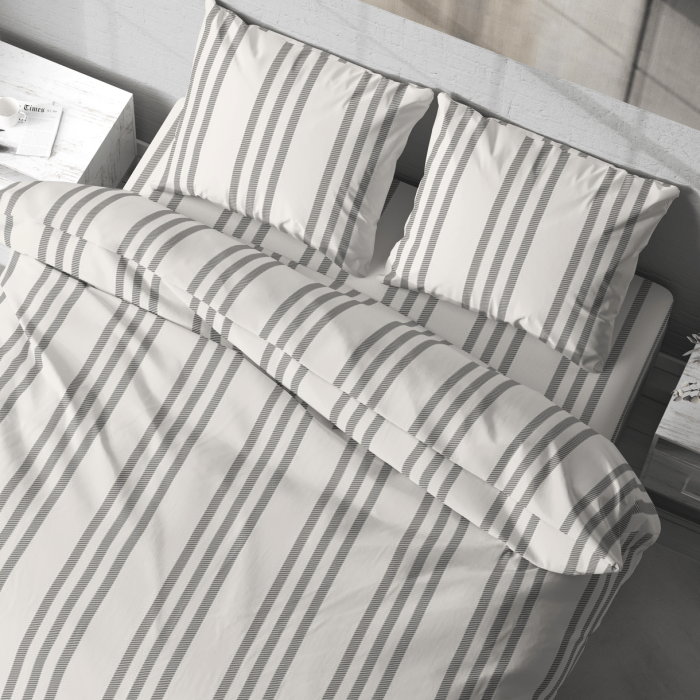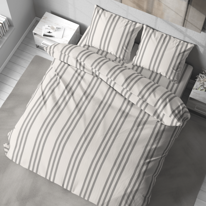 Постільна білизна LeLIT – це поєднання елегантного дизайну та практичності. Стриманий візерунок у смужку та ніжні відтінки молочного і сірого кольору додають комплекту вишуканості та універсальності. Такий дизайн легко доповнить будь-який інтер’єр спальні.