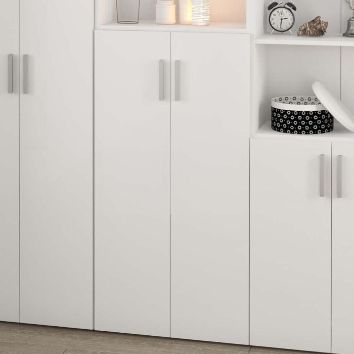 Всередині розташовані три місткі полиці, які ідеально підійдуть для зберігання одягу, текстилю, документів, побутових предметів і багато чого іншого. Завдяки універсальному білому кольору пенал легко поєднується з іншими елементами меблів і допомагає візуально «освіжити» інтер'єр.