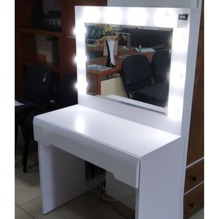 Туалетний стіл з дзеркалом ВМК (БРВ) Білий + Білий глянець