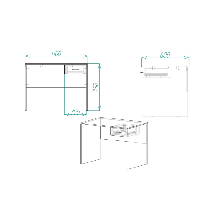 Стільниця та елементи конструкції виготовлені з якісної ламінованої деревно-стружкової плити (ЛДСП) товщиною 16 мм, яка вирізняється міцністю, стійкістю до вологи, подряпин та повсякденних навантажень. Кромка ПВХ забезпечує захист від сколів і збільшує довговічність виробу. Шухляда оснащена надійними телескопічними направляючими, що гарантують плавне та тихе висування.