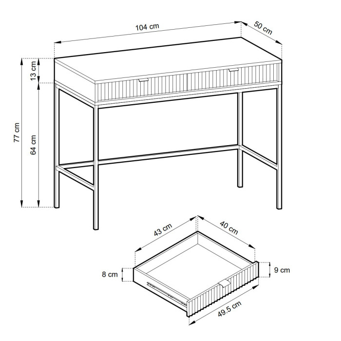 Туалетний столик із телескопічними напрямними Perfect Home Nova T104 — це вишуканий і практичний елемент для сучасної спальні чи гардеробної, який поєднує естетику та зручність. Оснащений шухлядами, він забезпечує зручне місце для зберігання косметики, прикрас, аксесуарів для догляду чи інших особистих речей, дозволяючи організувати ваш особистий простір. Стильний дизайн із металевими ніжками додає легкості та сучасного шарму, ідеально доповнюючи інтер’єр у стилі модерн чи лофт.