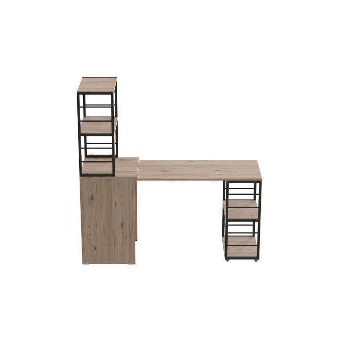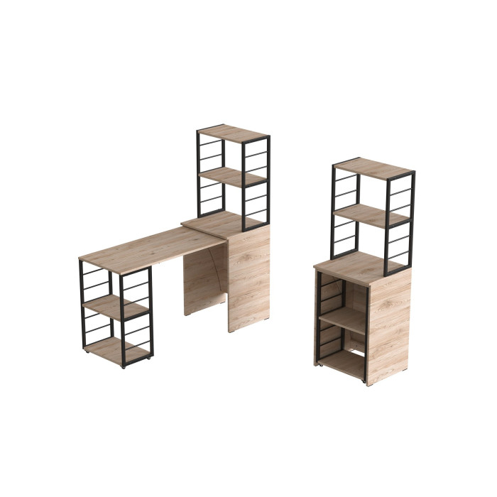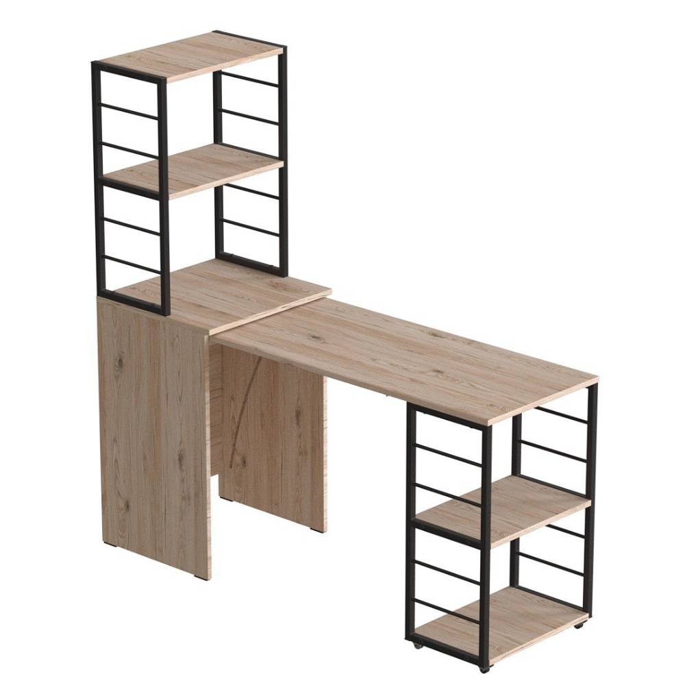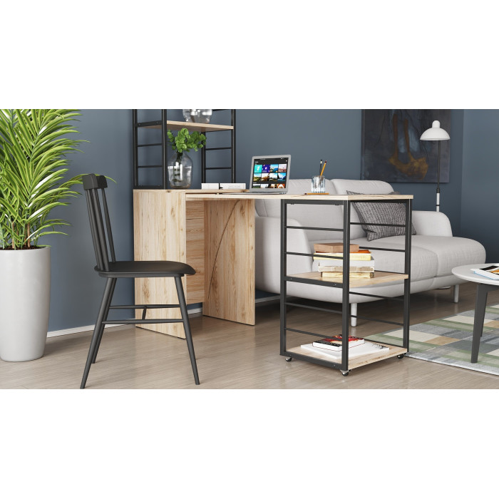 - Конструкція 2-в-1: тумба з етажеркою + повноцінний робочий стіл: максимум функціональності в одному виробі.