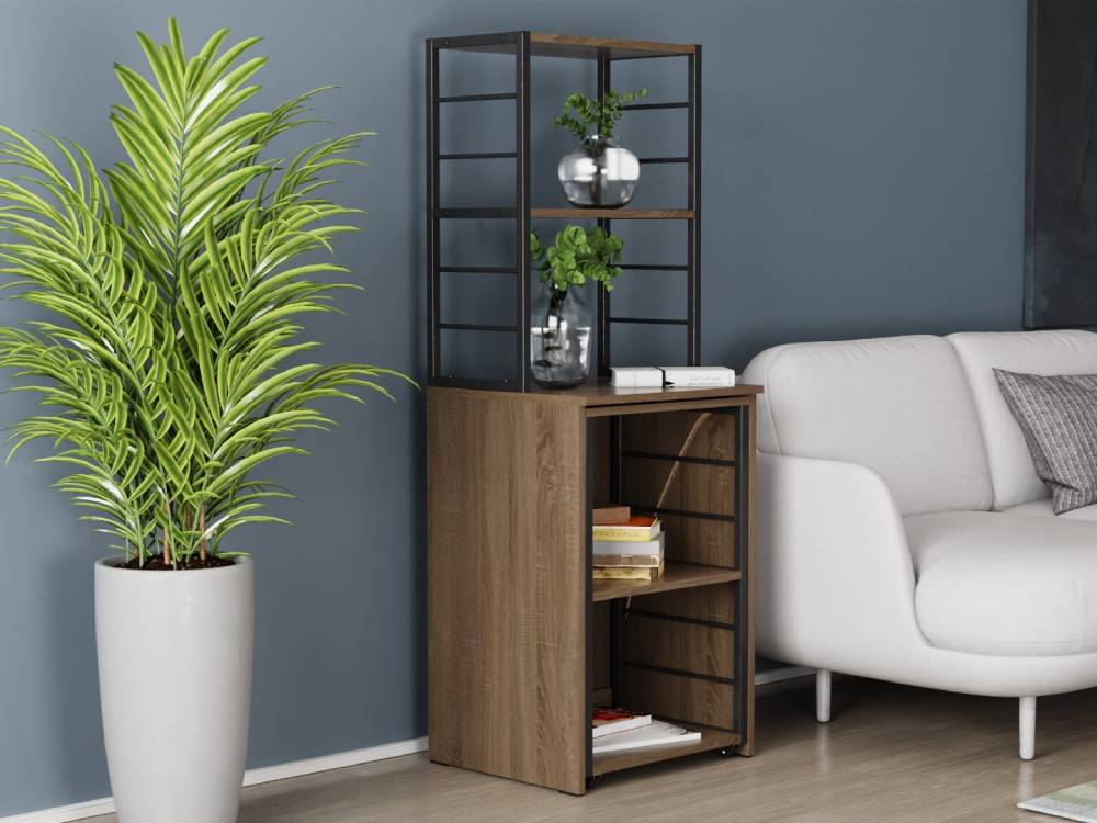 Стіл-тумба трансформер Смарт 3/1 з етажеркою Ferrum-decor — практичне та багатофункціональне рішення для дому чи офісу. У складеному вигляді він має вигляд компактної тумби з етажеркою, що не займає зайвого місця, а при розкладанні перетворюється на повноцінне робоче місце з додатковими поличками для зручного зберігання. Така конструкція дозволяє раціонально організувати простір і забезпечує комфорт у щоденному використанні.