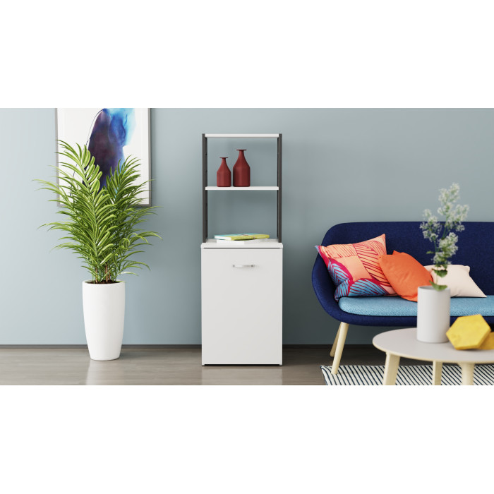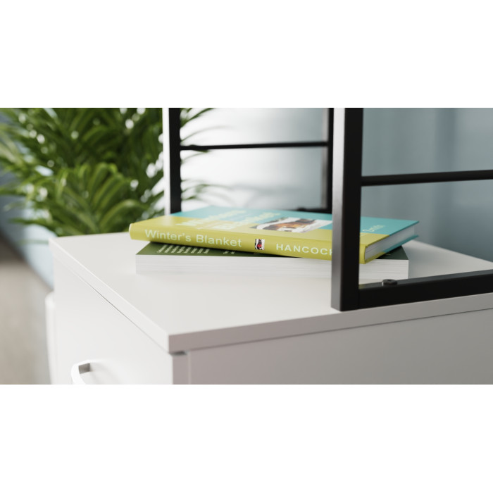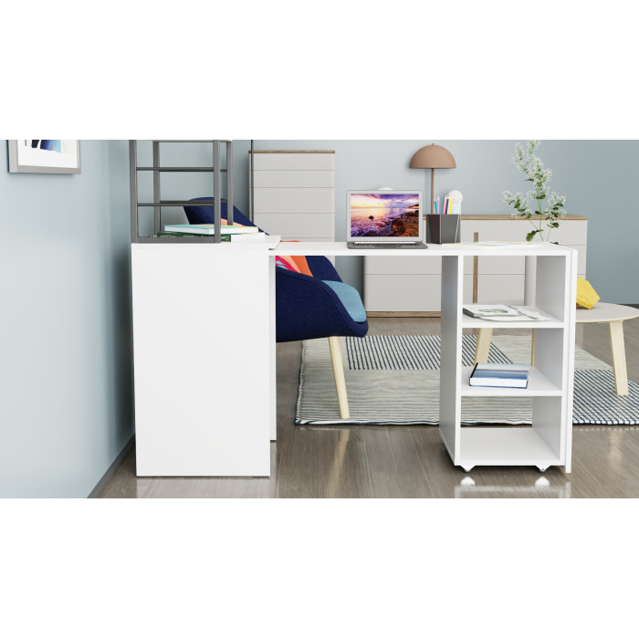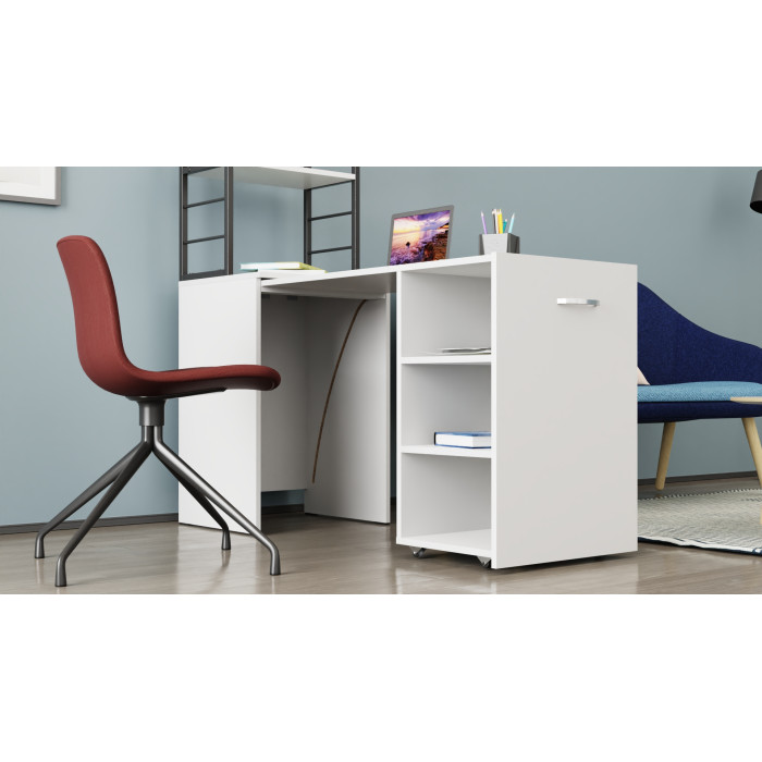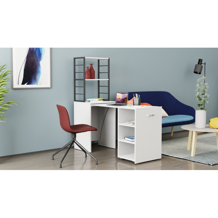 • Конструкція 2-в-1: тумба з етажеркою + повноцінний робочий стіл: максимум функціональності в одному виробі.