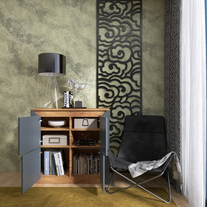 - Чотири закриті дверцята забезпечують зручний доступ до вмісту і дозволяють приховати речі від сторонніх очей.