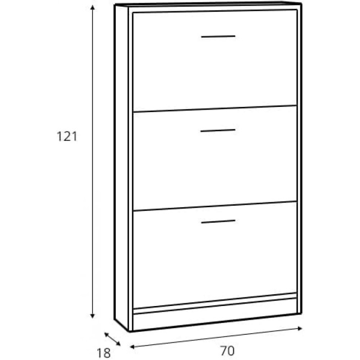 Розміри тумби гарантують її універсальність та практичність. Завдяки трьом дверцям, місткість тумби дозволяє зберігати велику кількість взуття, зберігаючи її в ідеальному стані. Фурнітура виконана у вигляді практичних роликів та фірмових петель, що надає конструкції додаткову міцність та стійкість. Такий підхід до деталей гарантує надійність та довговічність використання тумби. Модель може стати ідеальним рішенням для зберігання взуття в невеликих приміщеннях завдяки своїм компактним розмірам.