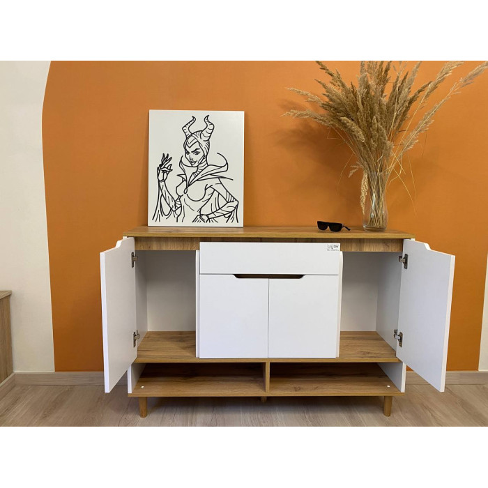 - Тумба оснащена місткою полицею для взуття, що дає змогу зручно організувати простір у передпокої та підтримувати порядок.