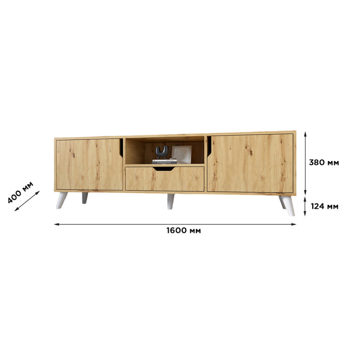 Тумба під телевізор з ніжками в кольорі Горіх світлий М-ЗОН Борн 1600 Дуб Артизан/Німфея Альба (білий) (MZN-031081)