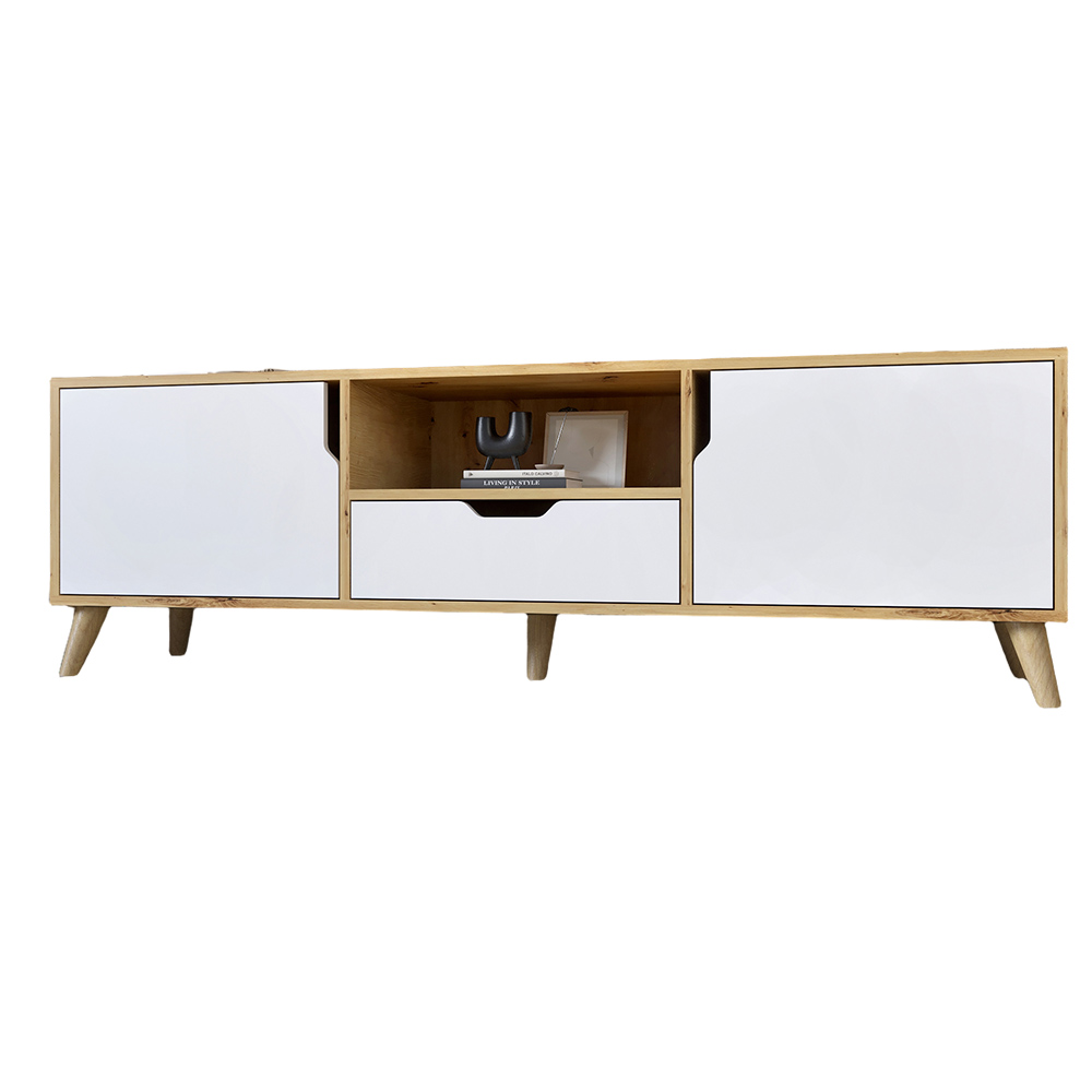 • Практичність: Тумба оснащена відкритими полицями та закритими відділеннями, які дозволяють організувати простір для медіа-пристроїв, книг, ігрових консолей та інших аксесуарів.
