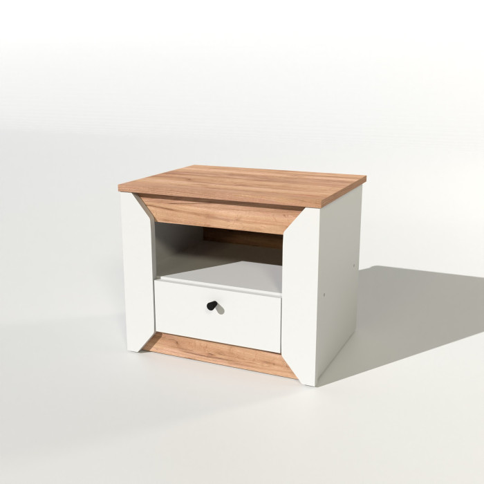 • Висувна скринька: Один ящик на телескопічних напрямних гарантує плавний та безшумний хід, забезпечуючи надійне місце для зберігання особистих речей, пультів чи білизни.