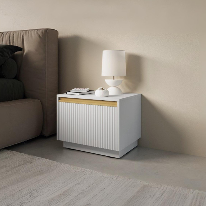 Тумба приліжкова Perfect Home Royal S54 1S — це поєднання витонченості та функціональності у компактному форматі. Витримана у холодній білій гамі з позолоченими деталями, вона стане не лише практичним елементом, а й декоративним акцентом вашої спальні. Стильна та водночас стримана, ця модель гармонійно поєднується з інтер'єрами у класичному, неокласичному або сучасному стилі.