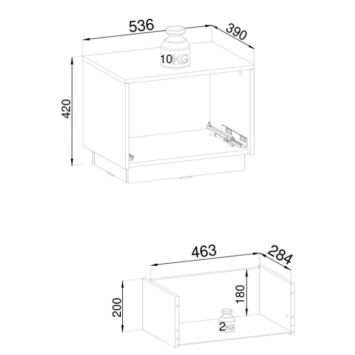 - 1 висувна шухляда на роликових направляючих — плавне й зручне відкривання.