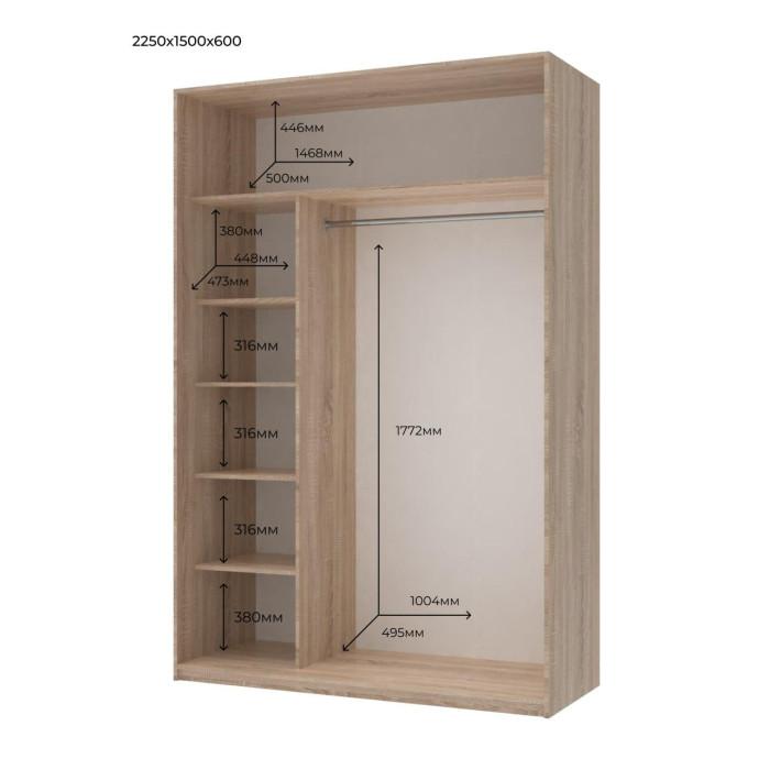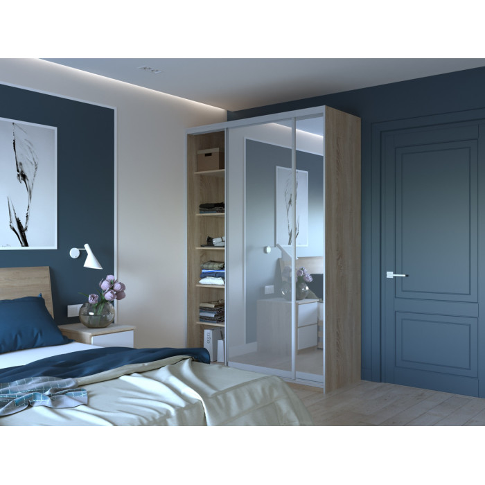 Шкаф купе Doros Сити Лайт Дуб Cонома 2 Зеркала 150х60х225 (44900073)